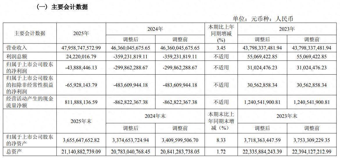3月13日晚间,宝胜股份(600973)发布2025年年报,2025年度公司实现营业收入479.59亿元,同比增长3.45%;归属于上市公司股东的净利润亏损4388.84万元,去年同期亏损近3亿元,同比亏损幅度缩窄。